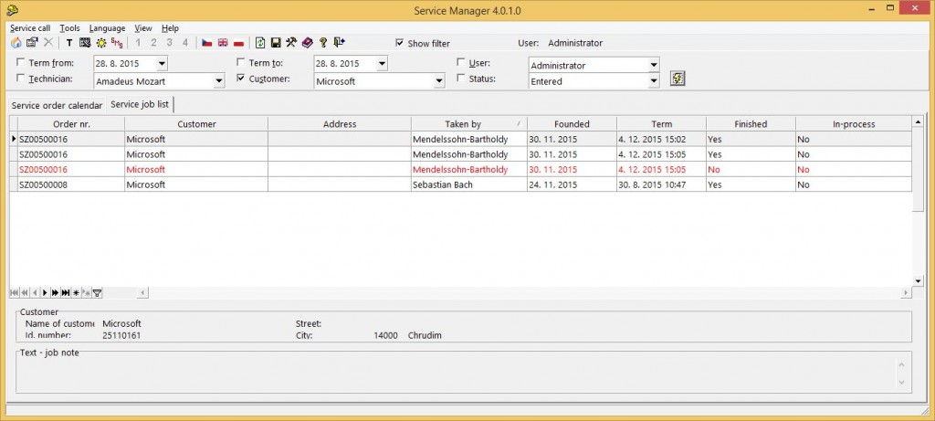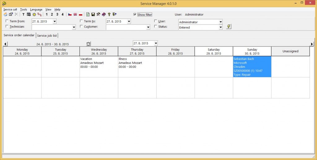 - Weekly overview - well-arranged display of actual and planned service calls defined in selected week.